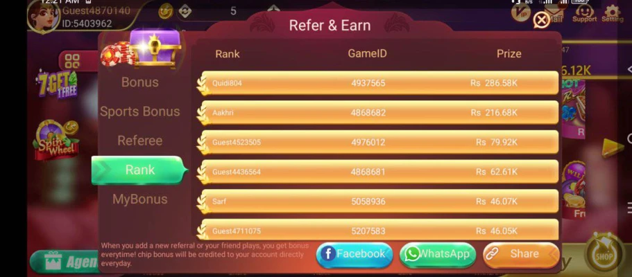 Referral Bonus: Extra rewards when you invite friends to join the app.